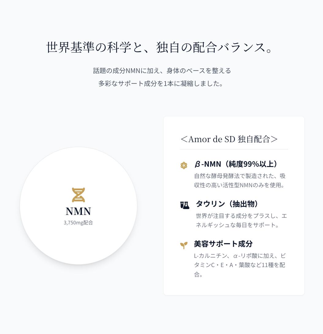 ✓ 《高配合》 希少なNMNを1本に3,750mgも贅沢に配合。